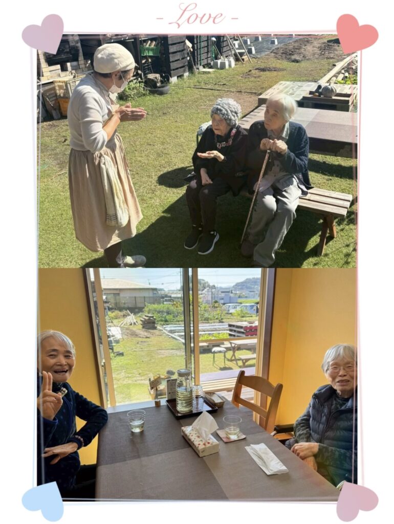 ご利用者様の娘様が営むお店【てのんでファーム】でのどかな風景が広がる中、晴天の青空の下で、いつもと少し違う雰囲気の外食を楽しみました。